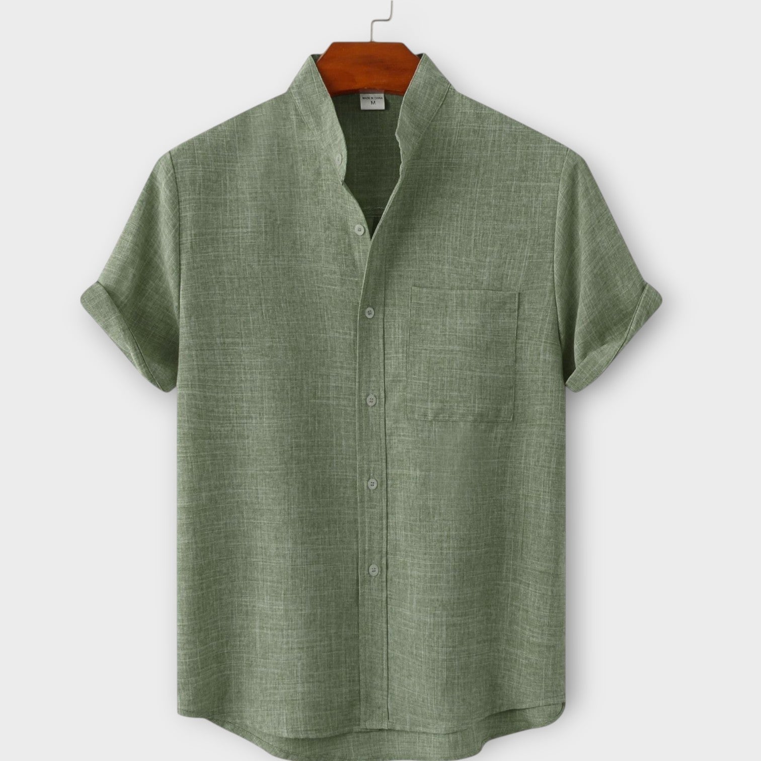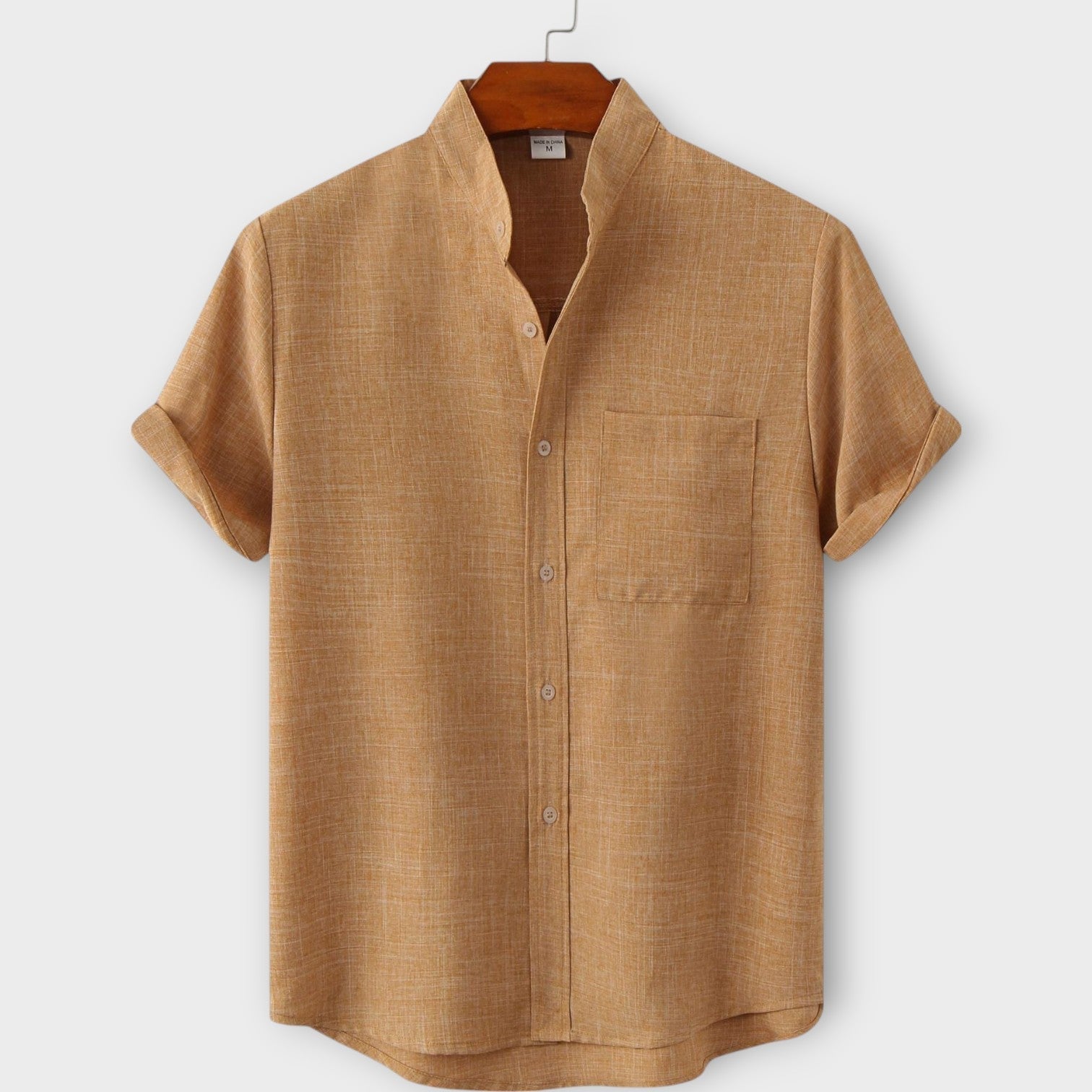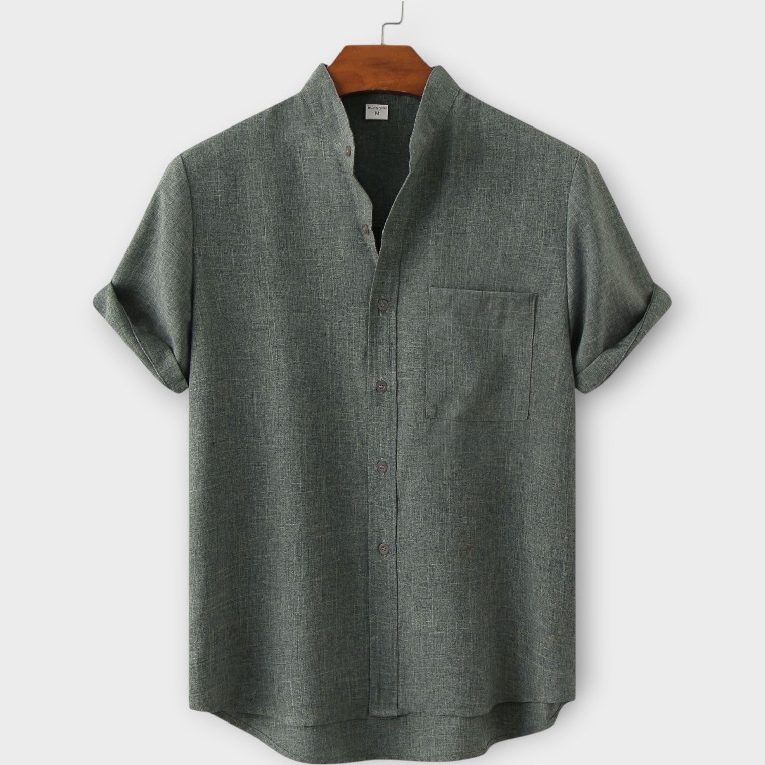 A clean, tailored fit with thoughtful touches like rolled sleeves and a modern mandarin collar.