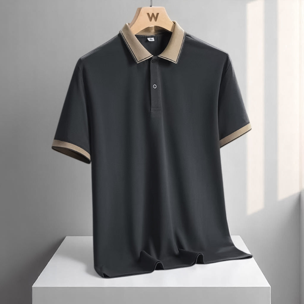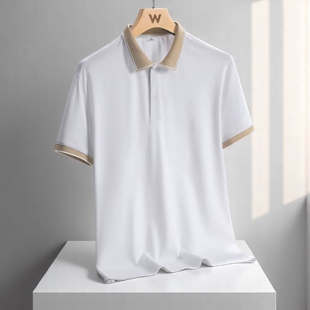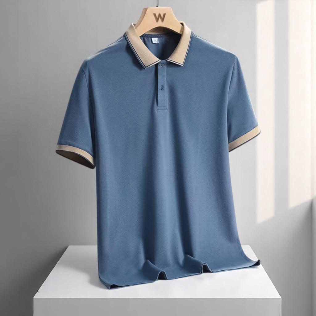 Style in the Details: Contrasting collar and sleeve trim add a crisp finish on or off the clock.