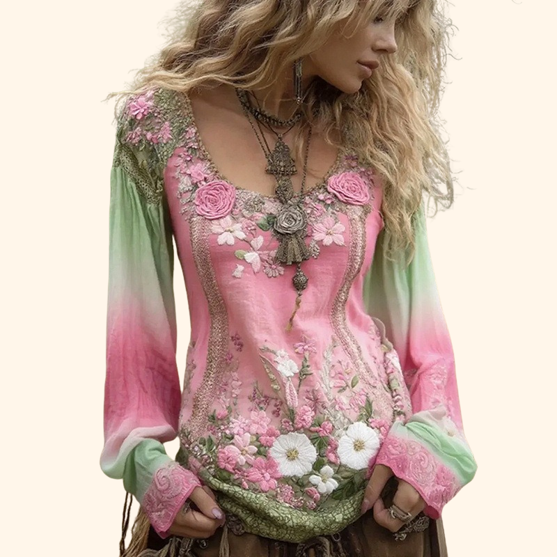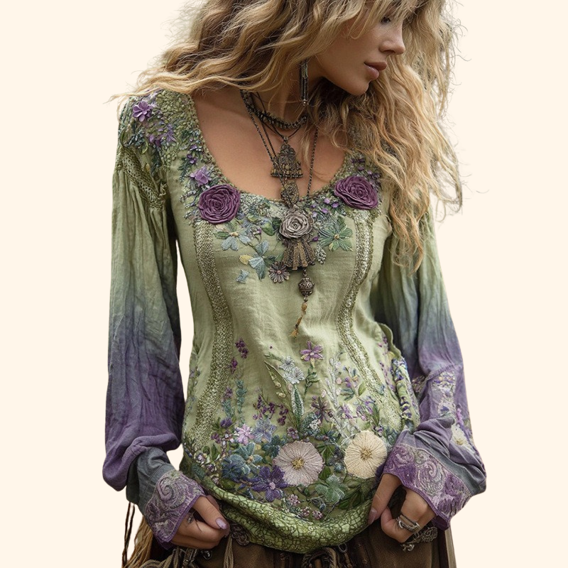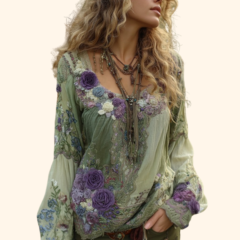 Bring your wardrobe to life with Jamilla, a beautifully embroidered green shirt that blends bohemian elegance with everyday comfort. Crafted from light, airy fabric and adorned with delicate lacework and floral motifs, this piece is a dreamy statement for free spirits and vintage lovers alike.