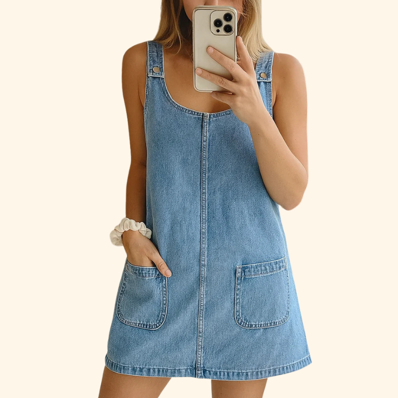 Discover the Lynda dress a practical and lightweight denim essential that blends simplicity with function. Designed for sun-soaked days, its sleeveless cut and airy fit make it as comfortable as it is versatile. With large, functional pockets, it’s a piece made for women who love style without sacrificing practicality.