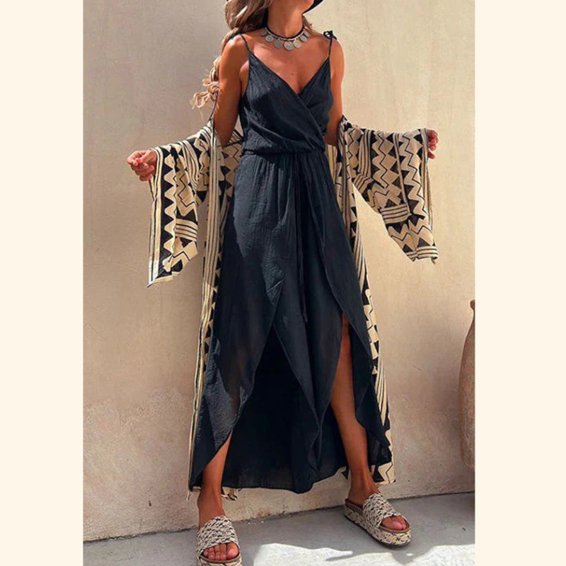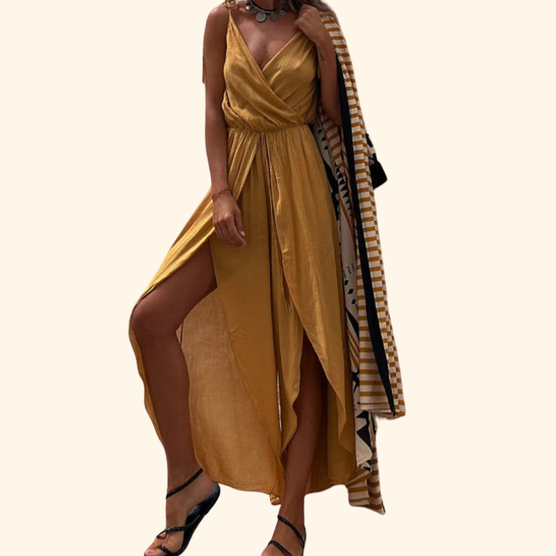 Step into summer with the Sydney Jumpsuit – where breezy comfort meets timeless boho charm. Designed with a flattering wrap top, adjustable straps, and a flowing split-leg silhouette, this piece moves gracefully with your body. Whether you’re strolling along the beach or attending a sun-soaked garden party, Sydney ensures you radiate effortless style.